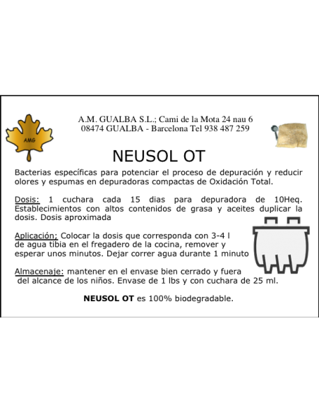 - Un bote de Neusol OT es suficiente para el mantenimiento de una depuradora de una vivienda durante un año