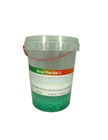 Los productos Sinol PreGel C son neutralizadores de olor (100 ml) concentrados que incorporan polímeros para facilitar su aplicación. Para cultivos, CSC o cualquier olor de origen orgánico: basuras, comidas, mascotas, ...